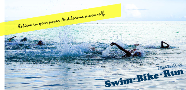 スイム(水泳)・ バイク(自転車)・ ラン(走る)の3種目を、連続して行う競技です。